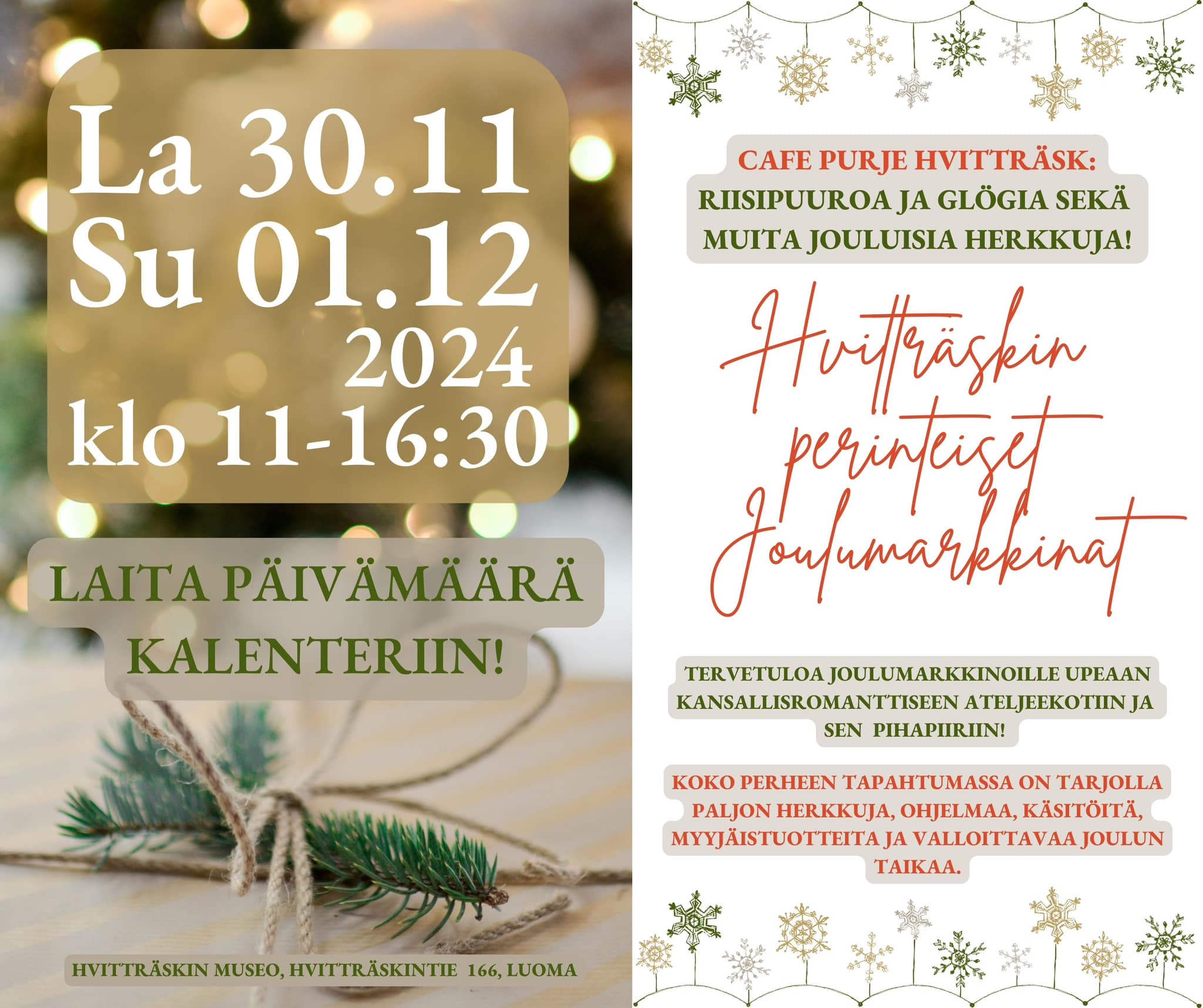 Hvitträskin joulumarkkinat 30.11.-1.12.2024!